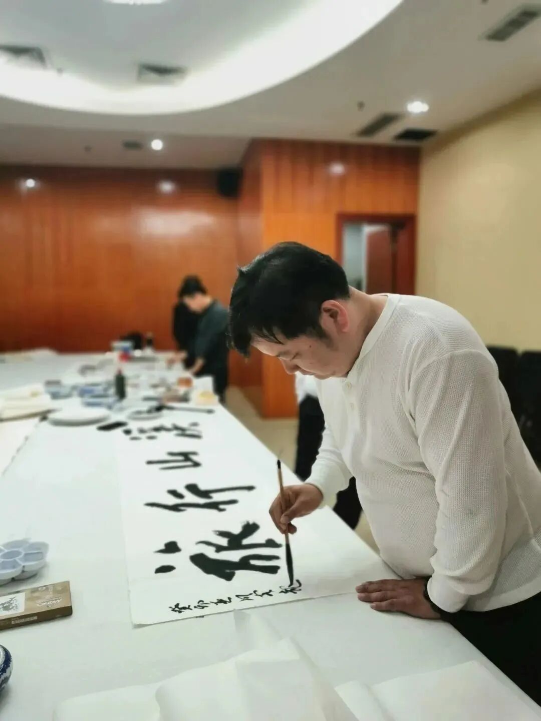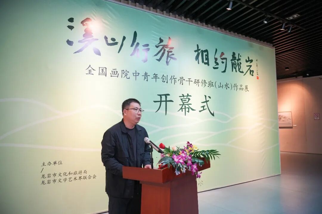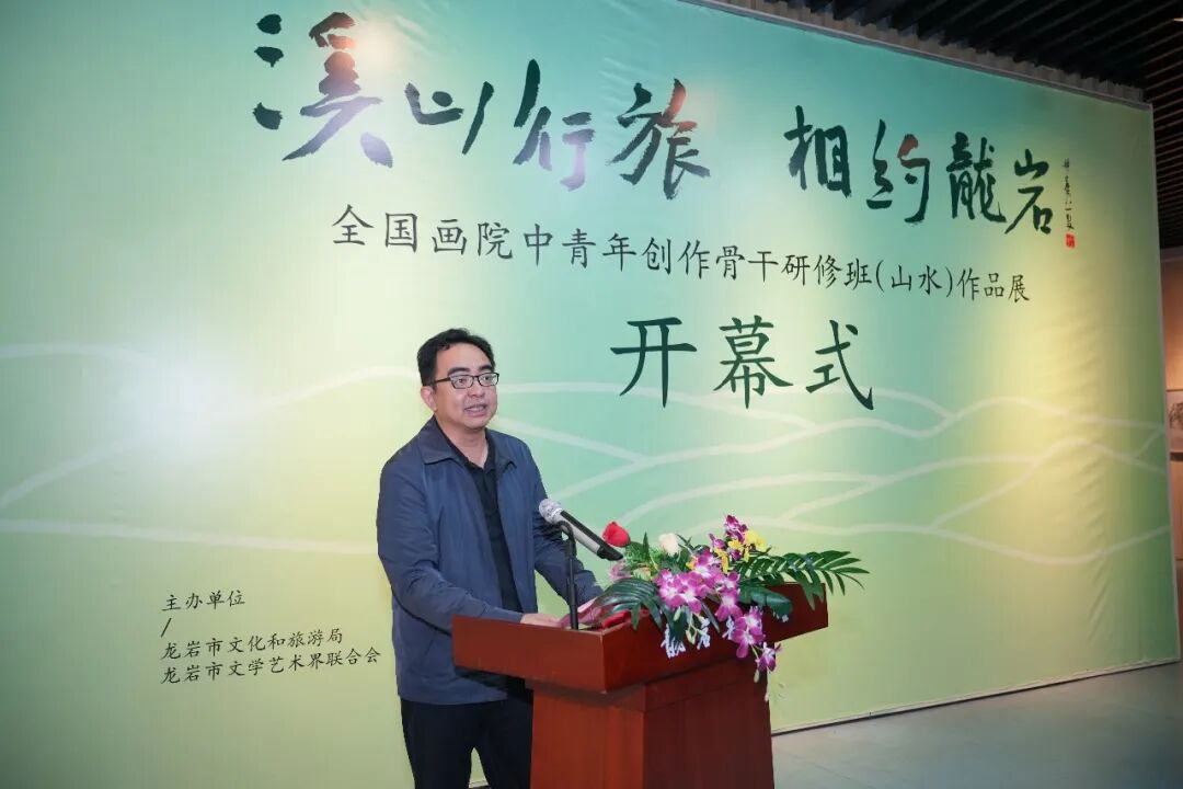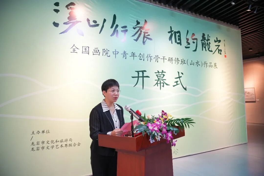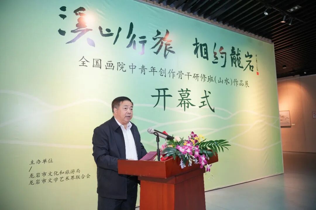 中共龙岩市委常委、宣传部部长杨溢;中国国家画院研究员、博士生导师、骨干研修班导师林容生;龙岩市文化和旅游局局长林丽凤;龙岩市政协文史委副主任官达;龙岩市文化和旅游局四级调研员黄素珍;闽西书画院院长胡益通;2021、2022届全国画院中青年创作骨干研修山水班学员,以及龙岩市美术界来宾代表出席开幕式。