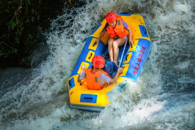该项目由三部分组成,其中橡皮艇漂流区全长3.8公里,河床宽3—19米,落差128米,从无人区到村庄入口长1.12公里,持续落差高达90米,为最惊险、最刺激漂流地段;竹筏漂流区全长6.5公里,河床宽4—38米,落差108米;亲水游乐区全长约0.2公里,河床宽约25米。