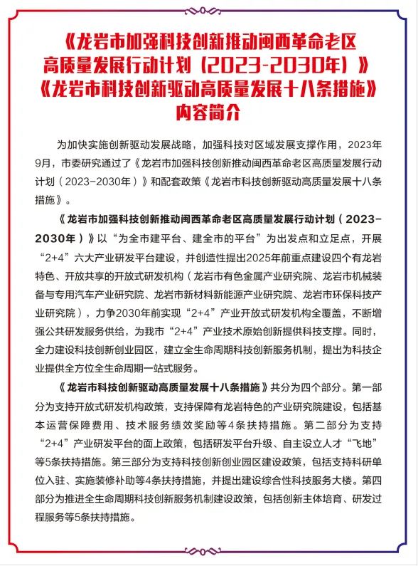 10月11日,在龙岩市科技创新大会召开前夕,以“创新驱动发展 科技引领未来”为主题的“龙岩市科技创新成果展”在龙岩市博物馆2楼正式开展。市委书记余红胜、省科技厅厅长李志忠、厦门大学副书记徐进功、市人大常委会主任詹昌建和市政协主席李桂义等领导启动展览并一同观展。