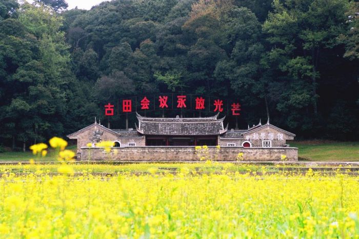 景区由古田会议会址、古田纪念馆、主席园、红军司令部政治部等景点构成。