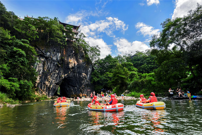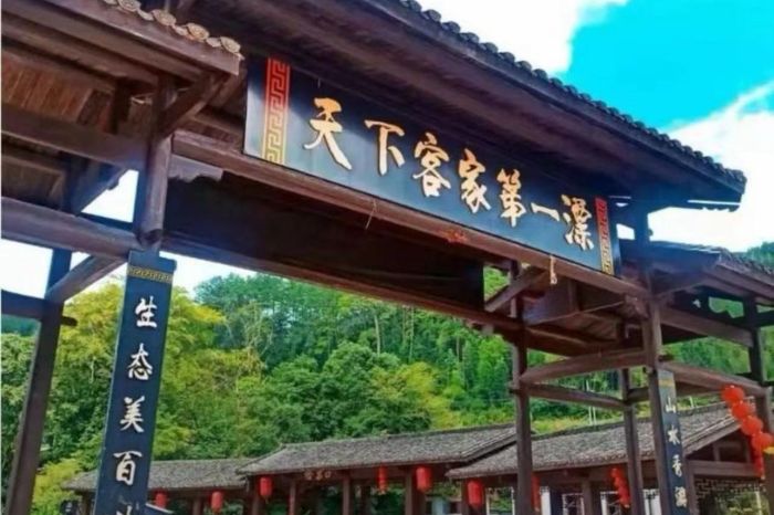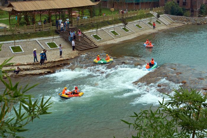 汀江源·龙门风景区有一座神奇的岩石冲天而立,如巨龙腾飞,似石门高耸,清澈的汀江水从石门中穿流而出。从此形成了“独我汀江跨龙门”的奇特景观。