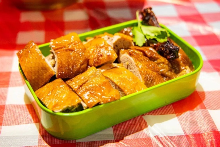 与北京烤鸭不同,冒烤鸭要再过一遍卤水