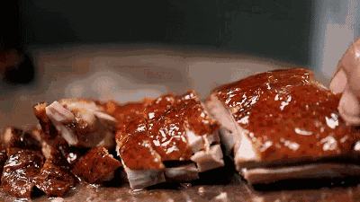 烤鸭经过千锤百炼,酥脆的外皮包裹着紧实绵软的肉肉,每一刀下去都能听到嘎嘣脆的声响。