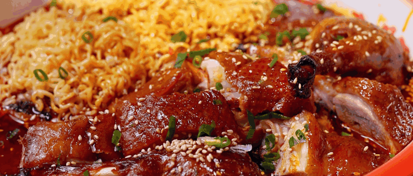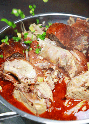 满满登登一大份冒烤鸭端上桌,麻辣十足的气息刺激着每一处神经,真是让人忍不住来上一口!