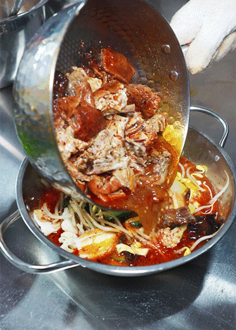 火辣辣的香气来势汹汹,彪悍开场!沉浸在红汤锅里的半只烤鸭,早已酥嫩脱骨,鸭子也更入味!
