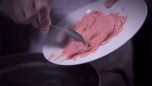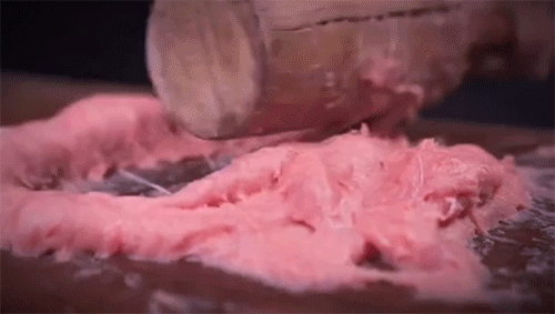 肉片取用猪后腿精肉,运用巧劲捶打成肉糜,一颗一颗滑入沸水中定型保鲜。