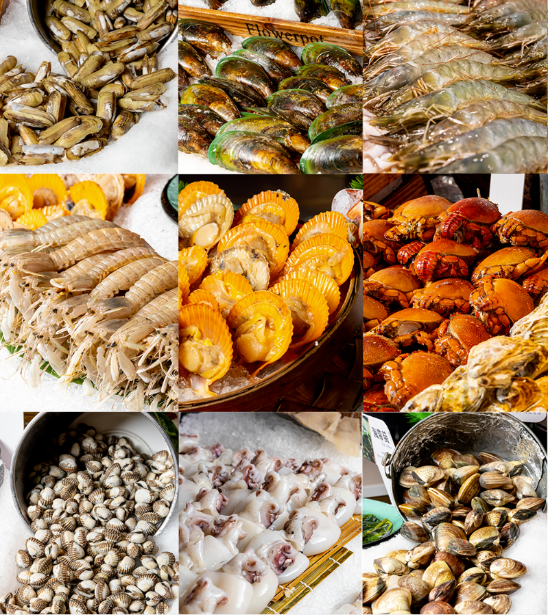 老虎蟹、皮皮虾、蛏子、扇贝……