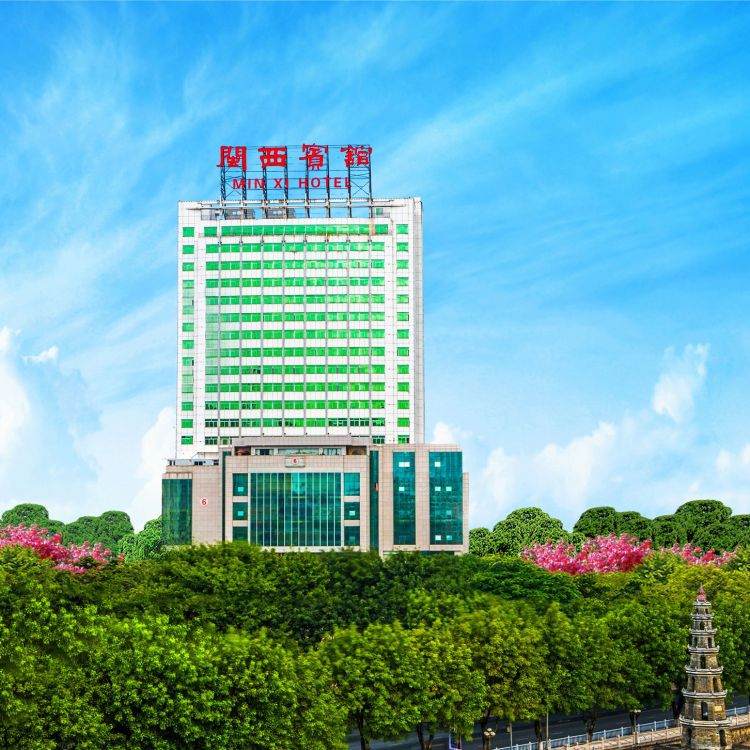 闽西宾馆是目前龙岩中心城市规模较大、档次一流,集住宿、餐饮、会议、休闲、红色教育培训为一体的综合型旅游四星级宾馆,是龙岩住宿业、餐饮业的品牌老店。闽西宾馆占地面积约2.3万平方米,由1号楼、6号楼、8号楼三栋主体建筑以及水景、花园等组成,呈“园林式、山庄式”格局,各种服务配套设施齐全。