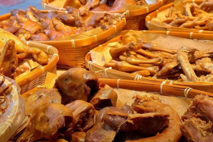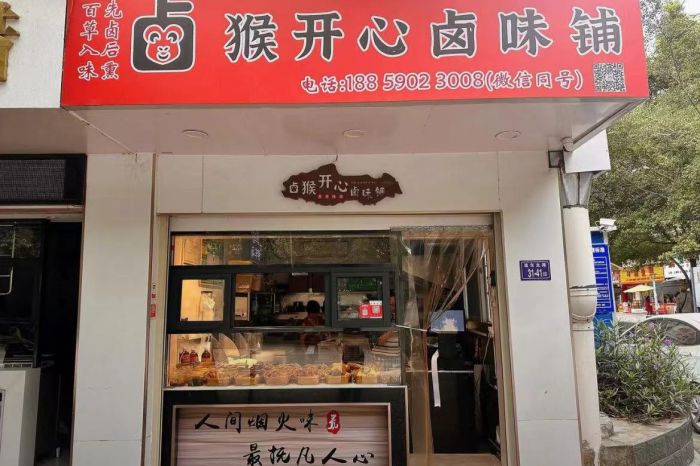 猴开心卤味铺是一家以卤味为主打的小吃店,它的特色在于其独特的卤味配方和制作技巧,使用新鲜的食材和多种中草药进行卤制,使得卤味更加入味、香浓,且不失营养和健康。