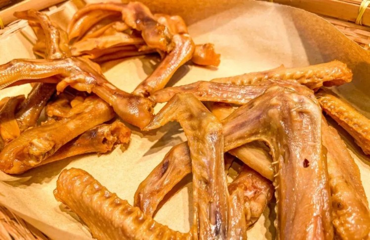 熏卤鸭翅经过制作后多余的水分已经完全排出,使得口感咸香恰到好处。每根鸭翅入口紧实而不柴,很有嚼劲!
