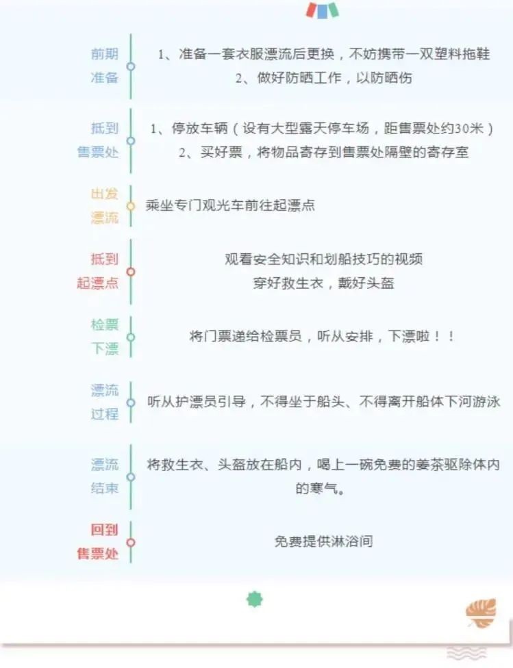 1.请准备一套衣服漂流后更换,最好携带一双塑料拖鞋;