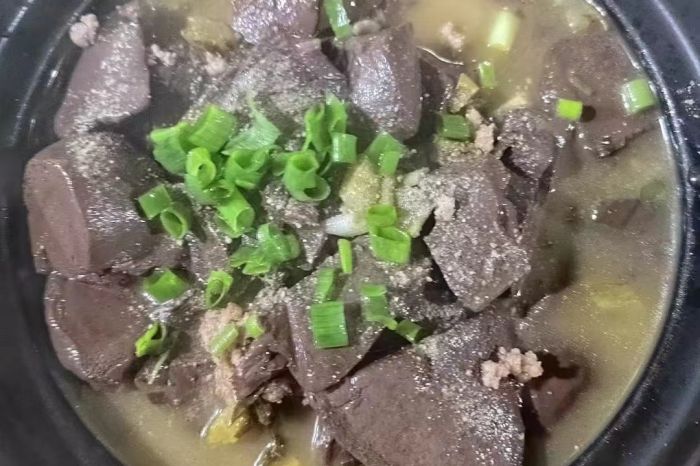 2、鸭血酸菜煲