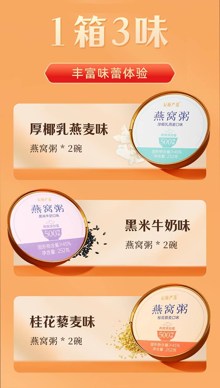 •燕窝粥礼盒装252g/碗*6碗(厚椰乳燕麦燕窝粥2碗+黑米牛奶燕窝粥2碗+桂花藜麦燕窝粥2碗)