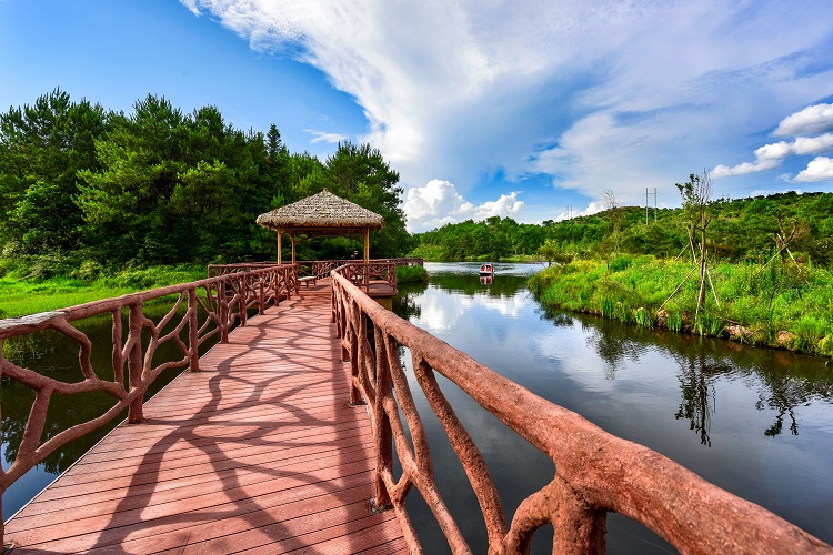 汀江国家湿地公园位于国家历史文化名村——三洲镇三洲村,是国家AAA级景区,是福建省第四个国家湿地公园,也是国内唯一的一个河滩湿地。景区自然与人文交相辉映,基础设施完善、风景优美,形成乐水栈道休闲游、生态科教观光游、环湖骑行漫游、运动健身康体游、山水生态度假游、湿地采风摄影游等主题游线,已形成集观光游览、生态休闲、健身康体、科普教育等功能于一体的生态旅游景区。