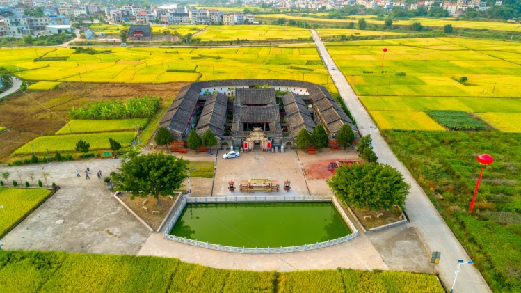 宗祠前方后圆,前低后高,祠形为“蜘蛛结网”形。