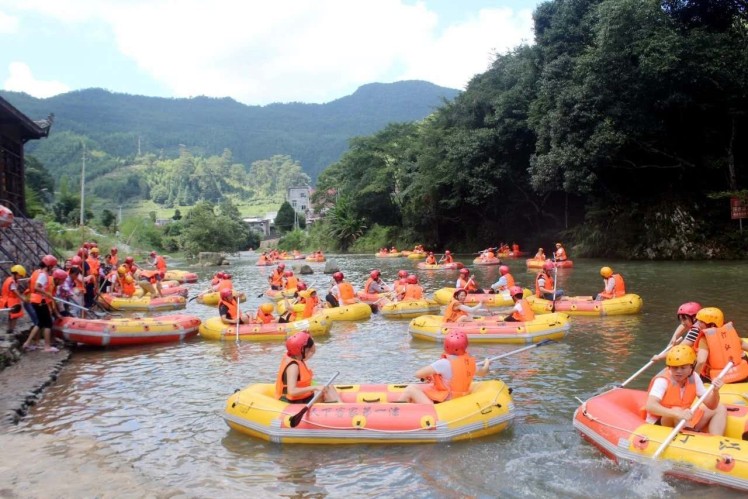 14:00 “龙门漂流”地点位于福建省长汀县庵杰乡,是汀江的源头。漂流全程长度约五公里,历经十五个溪潭,六段险滩,四段摩崖雕刻群,三段古树丛