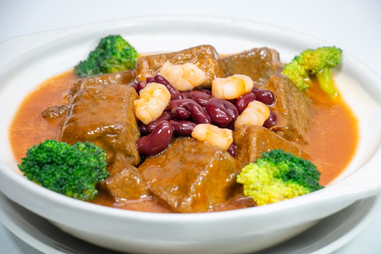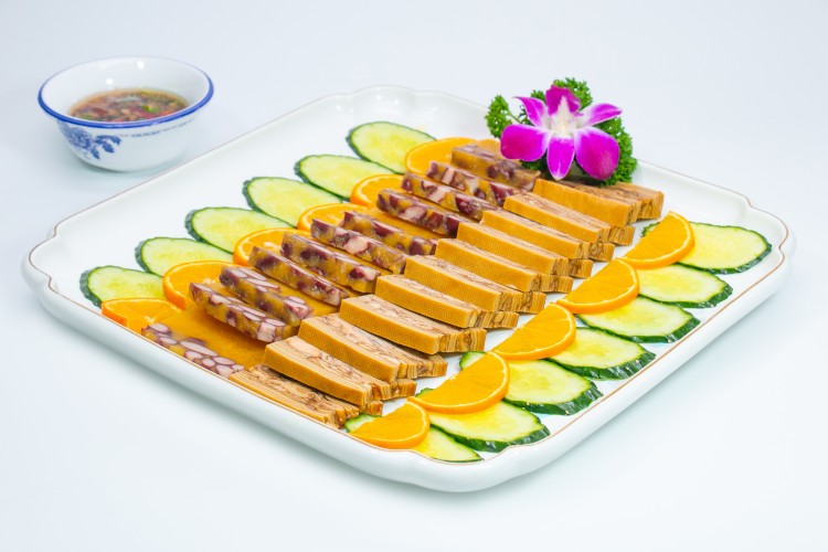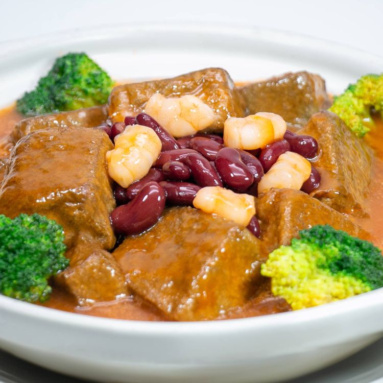 鲍汁黑豆腐,独特的风味,质地紧密,营养价值颇高,具有补肝肾,强筋骨,暖肠胃,润肤活血,乌须黑发之佳品。