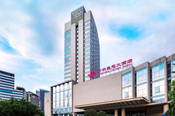 万华皇冠大酒店位于龙岩大道商务版块,与龙岩市政府、金融中心、美食城、龙津湖公园、湿地公园相毗邻,背靠莲花山,地理位置绝佳。酒店地处繁华的商业中心,各种商务往来快速便捷。集住宿、餐饮、会务为一体,致力为宾客营造“高端、时尚、温馨、典雅”的商务休闲之旅,是您商务及观光旅游的首选之所。