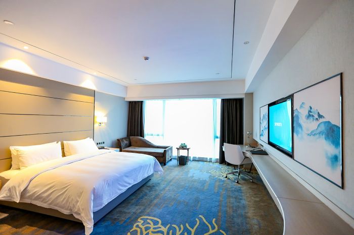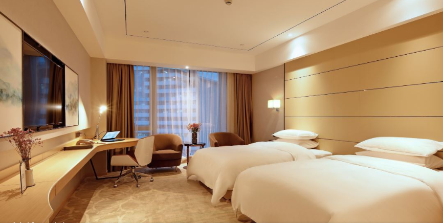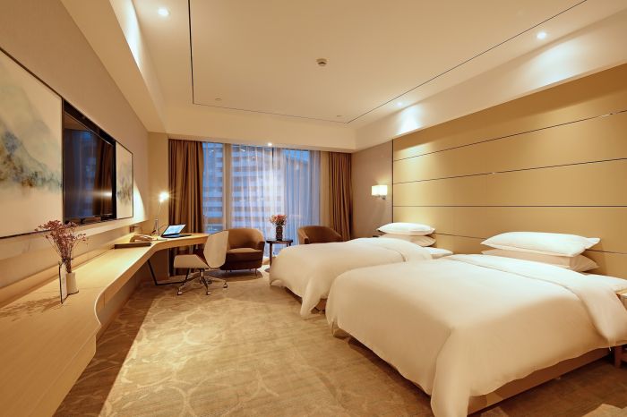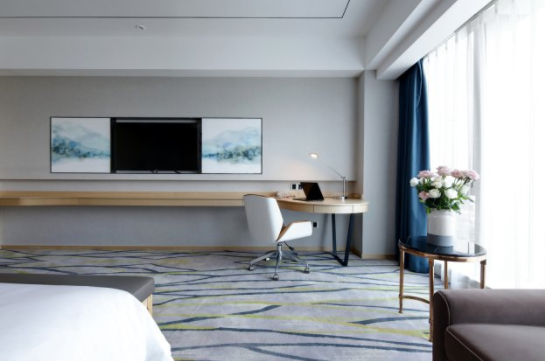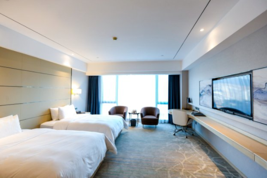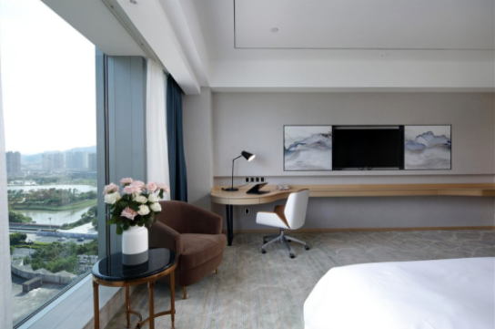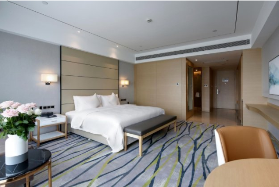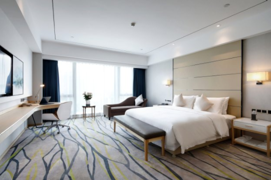 万华皇冠大酒店客房内的主色调以米色为主,配以扎染样式的厚实地毯,令房间内温馨趣致。保持极简的设计调性,白色,米黄,深棕为主色调,柔和的灯光下显得格外肃静典雅。四季皆有景,豪华全景房的设计旨在令住客“回归自然”。简约大气,温暖质朴,给旅途中的您一个安心的栖息之处。家具的精致细节突出贵宾的尊尚,令贵客宾至如归。
