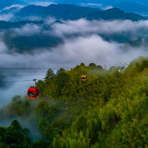 景区涵盖了全国zui长的双驱动拐弯索道——梅花山·步云索道。