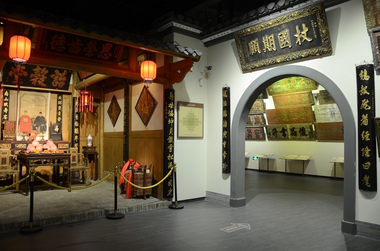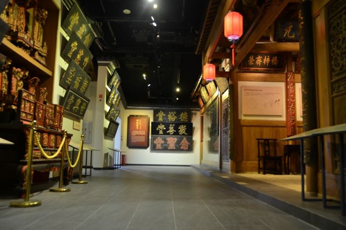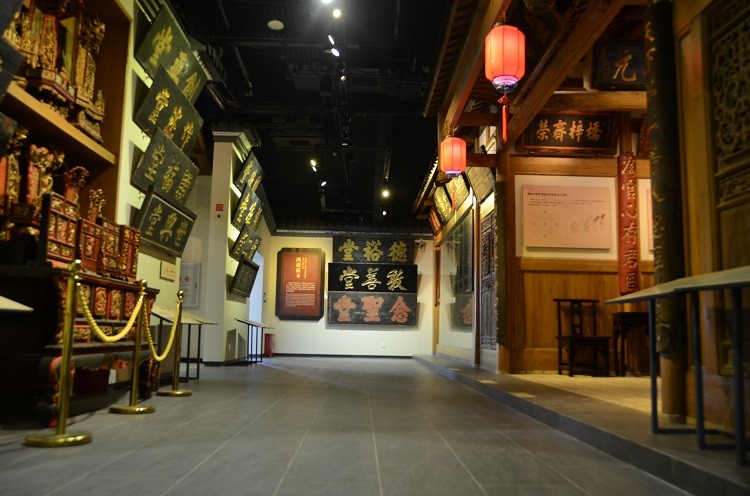 总序厅位于主楼一层椭圆形采光井区域,装饰呈现古色古香的客家古民居建筑风格。正面墙矗立以连城山水人文元素设计的大型浮雕墙。