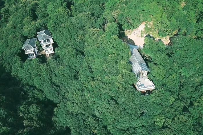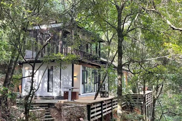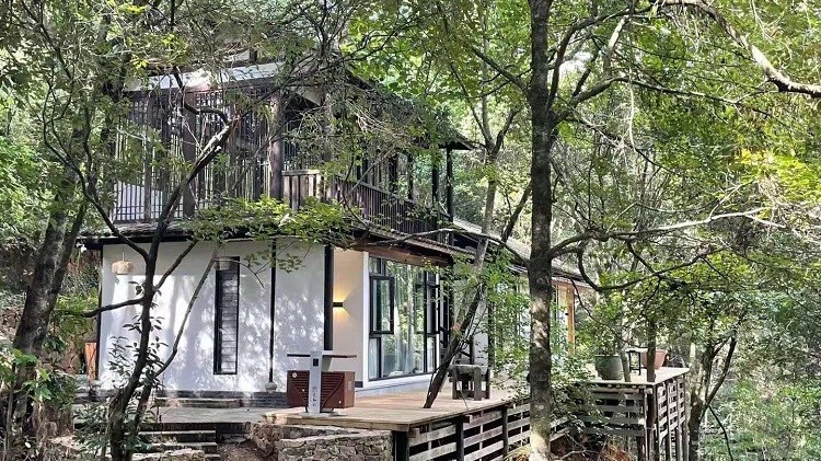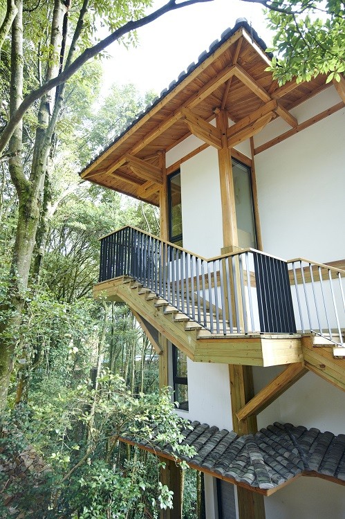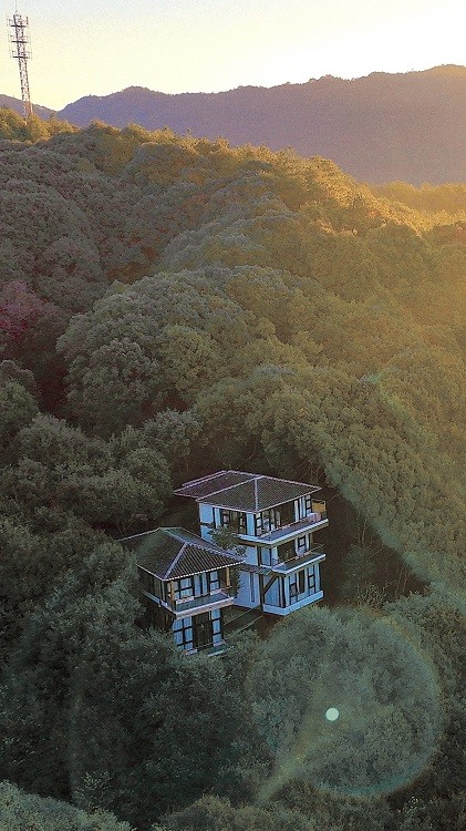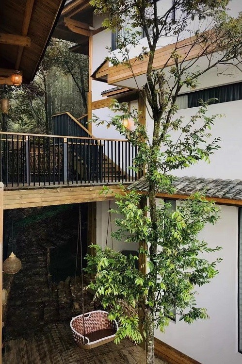 借山而居由三栋建筑组成,共8套房,其中大床房6套,亲子房2套。建筑采用传统古朴的榫卯结构搭建而成,以中草药名字命名,淡淡木质香与山谷的本草文化相结合,打造人与自然和谐共处,借山而居之概念。