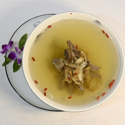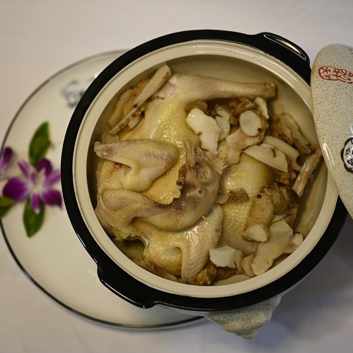 凡草斋内共5间餐厅,以多花黄精、黄花远志、灵芝、山苍子、牛奶根、铁包金、五指毛桃等自种中药为引,搭配上鸡、鸭、鱼、肉等食材,把药物作为食物,同时赋以食物药用,药借食力,食助药威,形成萱和谷一道独特风味。