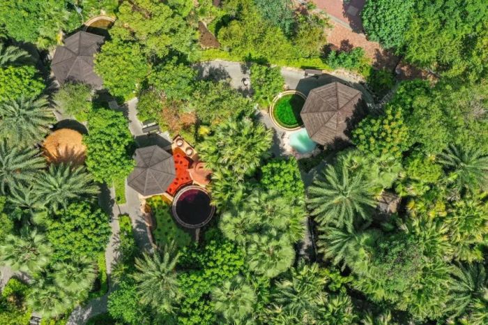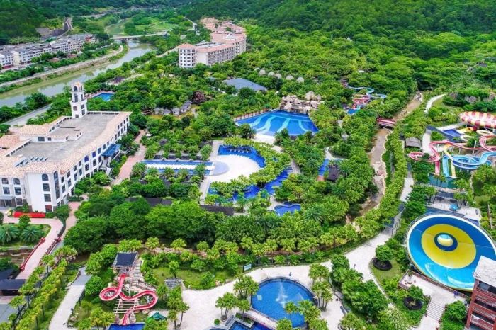 药浴温泉区,将各种名贵药材泡入泉池中,有灵芝泉、当归泉、健腰固肾泉、花茶泉、酒泉、牛奶泉等。