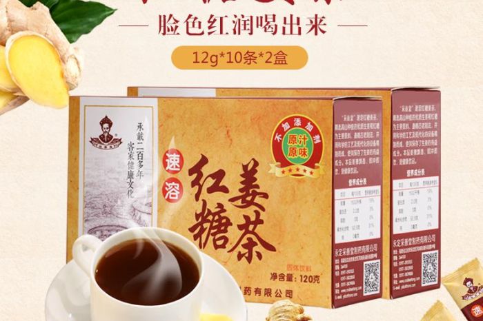 1、红糖姜茶成分:老姜、红糖、白糖;