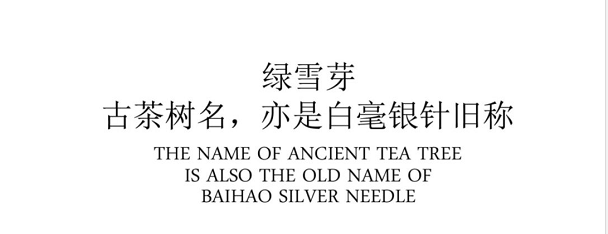 据《太姥山全志》记载:“绿雪芽,今呼白毫,色香俱绝,而尤以鸿雪洞为最。性寒凉,功同犀角,为麻疹圣药。”可见,绿雪芽亦是古时白毫银针的代称。