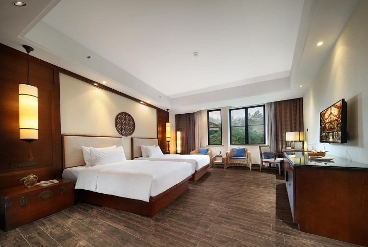 本次入住的是42㎡起跳的雅致房,保留出足够大的空间给客人。典雅舒适的空间内,客家风格装饰布置温馨,甄选樟木家居,悬挂着木式雕花,干净利落,尽展眼前。