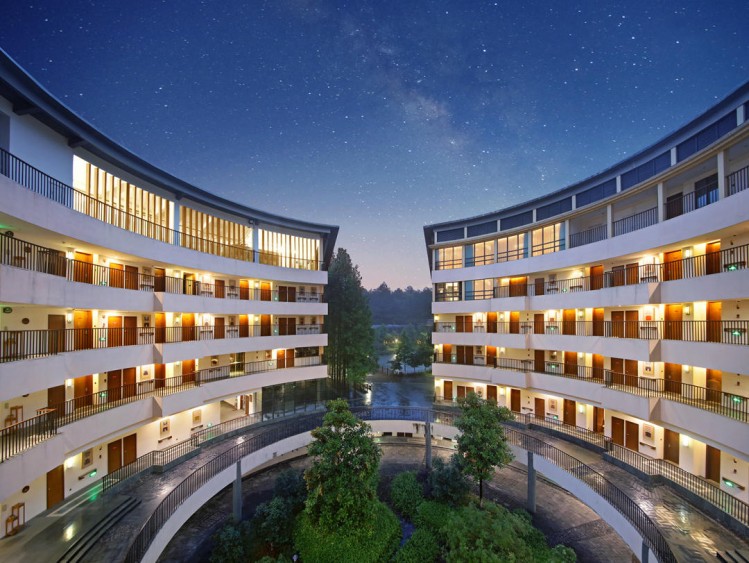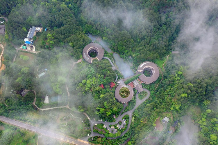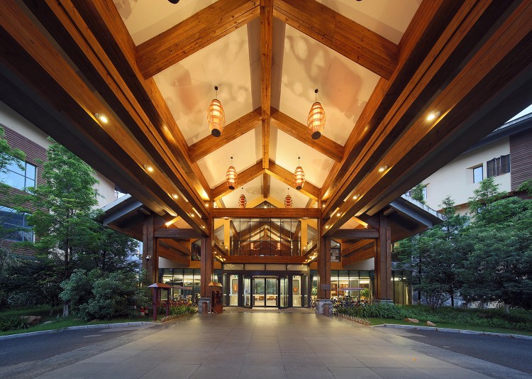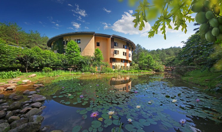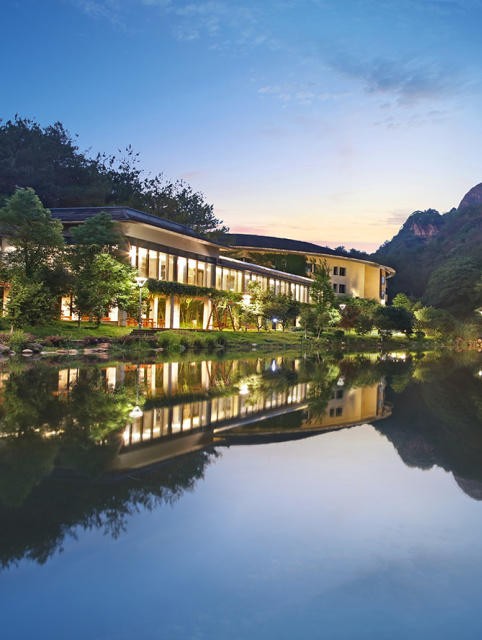 远远望去,酒店和自然山色融成一体,竹林与溪水为证,在大自然的怀抱之中,悠然自得,仿佛古代小说中隐藏的世外桃源,让人想一探究竟。