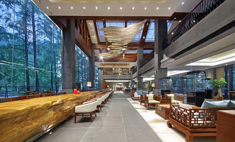 步入酒店,处处可遇浓郁的客家风情,原木的中式风格带给人一种静谧,样式各异的老客家器物、经典的客家蓝、竹藤文化、樟木文化、客家茶文化等在这里一一呈现。