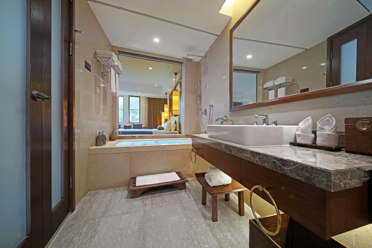 宽大的洗漱间干净整洁,洗漱用品一应齐全,各种陈设摆件都设计得小巧精致,不经意间看到顿感惊喜。夜幕降临,卸下一日的疲倦,泡个热水澡,放松身心,享受一夜好眠。
