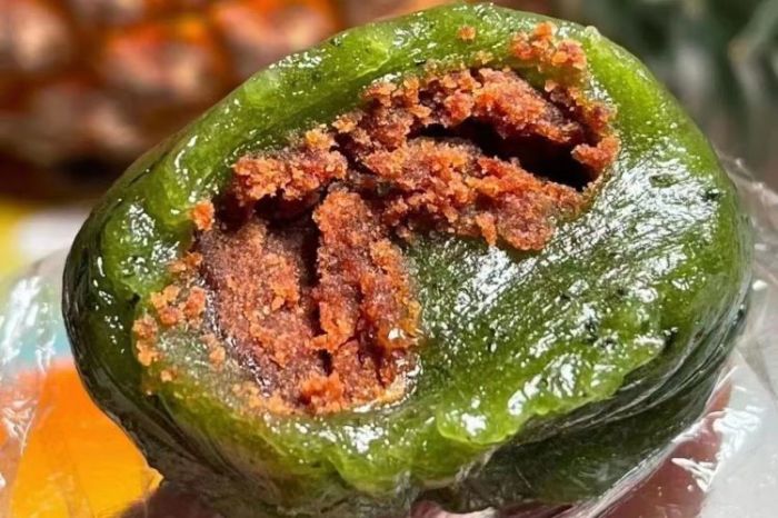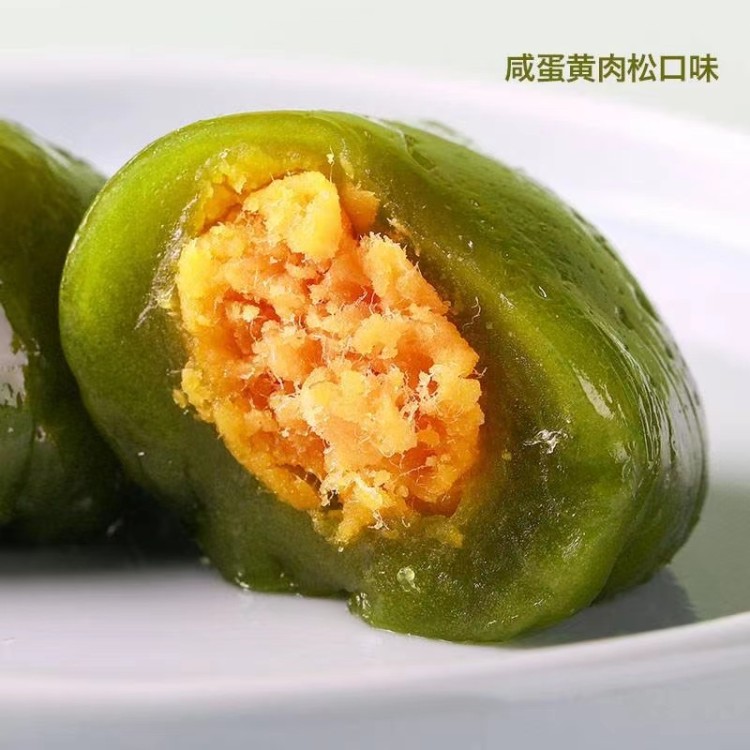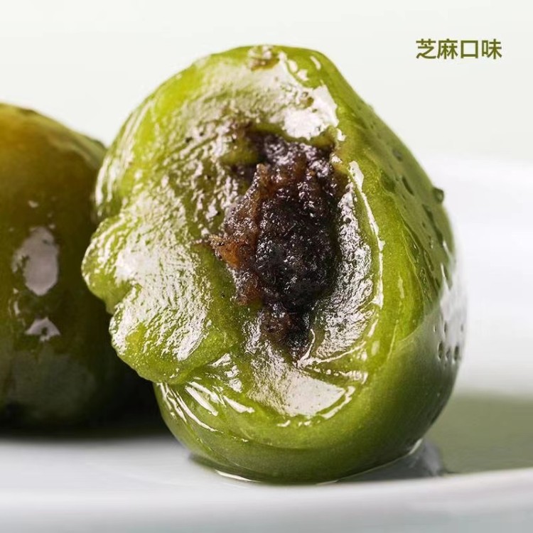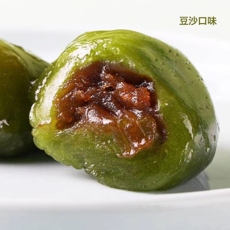 甄选芜湖南陵糯米研磨成糯米粉,混合宁波慈溪海艾,成就了这款青团的外皮,Q弹软糯且不易黏牙,打开包装便能闻到扑鼻而来的青草香。
