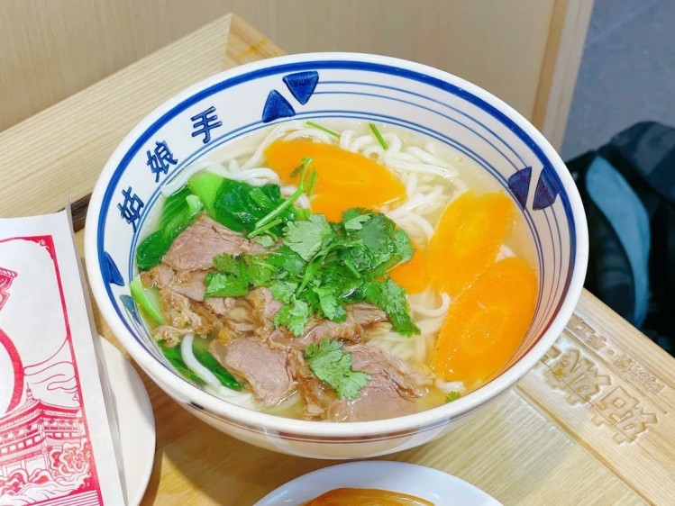 店内的牛肉面是正儿八经由师傅手工制作出来的