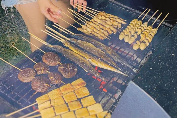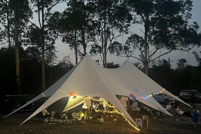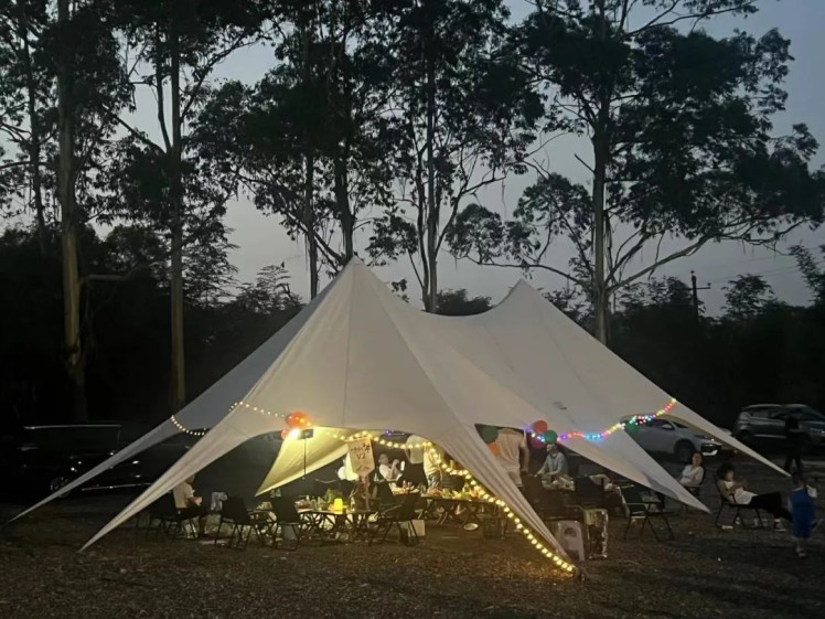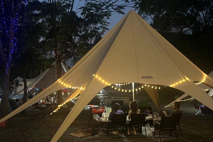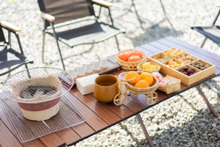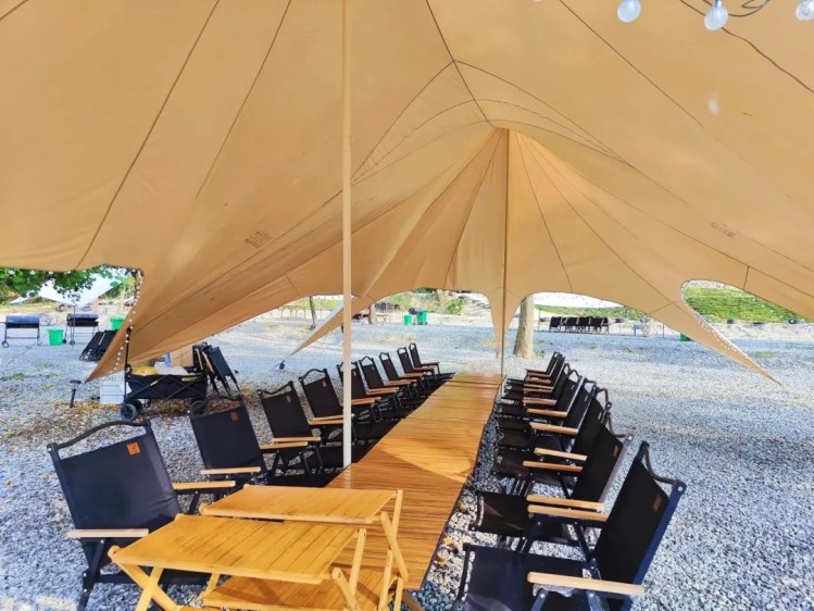 天幕帐篷、户外桌椅、烤炉、木炭、生火服务