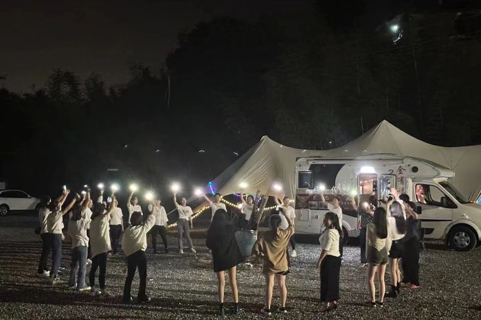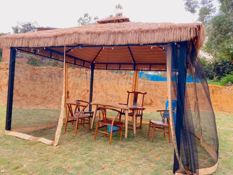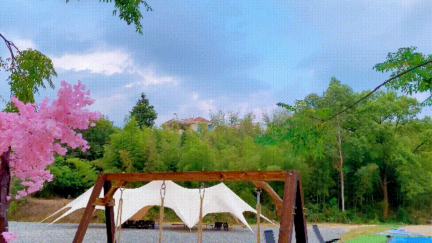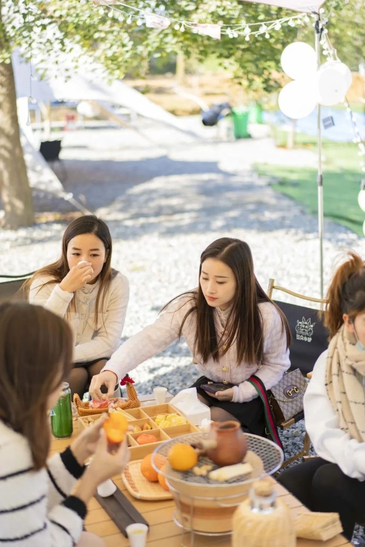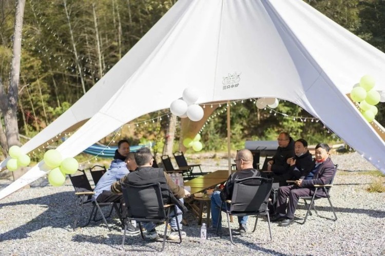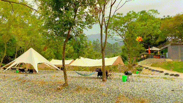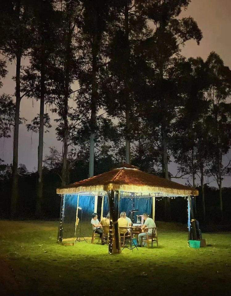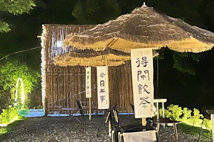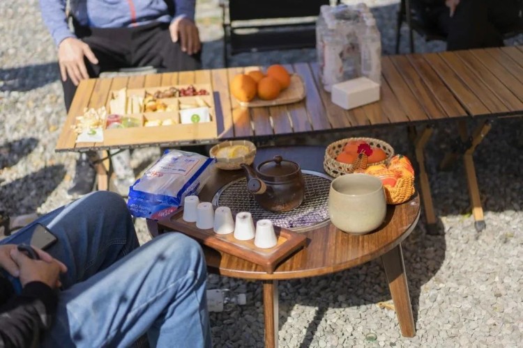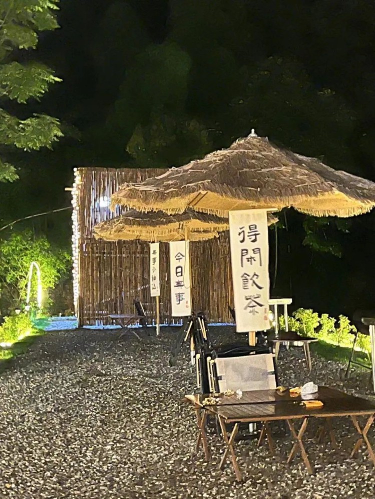 营地内还有单独的品茶室,茶具、卡式炉、茶叶、山泉水、花生,这里一应俱全~吃完烧烤再来细细品茶, 品茗时入目都是新绿。