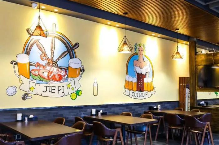 酒馆分为上下两层,空间宽敞明亮